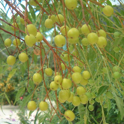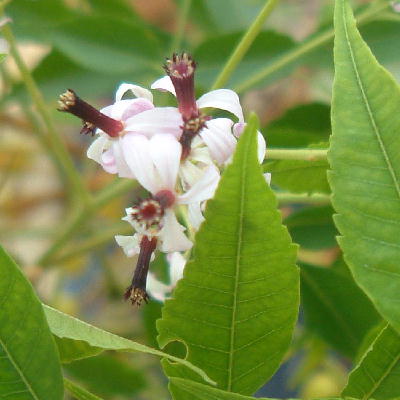 Notes; Horticulture potential: This is a 10' deciduous tree, this ornamental tree has clustered flowers with a large canopy. It is often planted as a shade tree. It will prefer full sun but it can also be in partial shade. It will also tolerate a wide range of soil. The fruits are poisonous to many mammal but it is not to birds. It become a weed if the fruits are not kept in check. In India, the leaves are sometimes used as an insecticide.