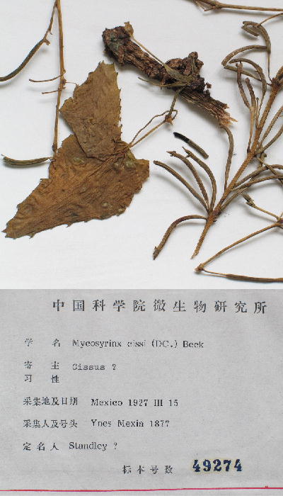 Notes; Little is know about this fungi. Two other specimens were collected by E. Sundell 2140, 03 Jan 1982 A parasitic plant growing on Cissus trifoliata VITACEAE Sorrel Vine, Marine Vine