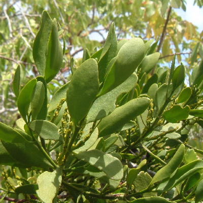 Phoradendron quadrangulare is a little more acute at the apex where P. rubrum is obtuse at the apex