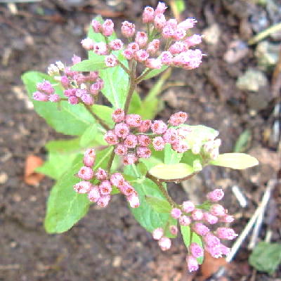 Dark pink inflorescence, fragrant leaves
